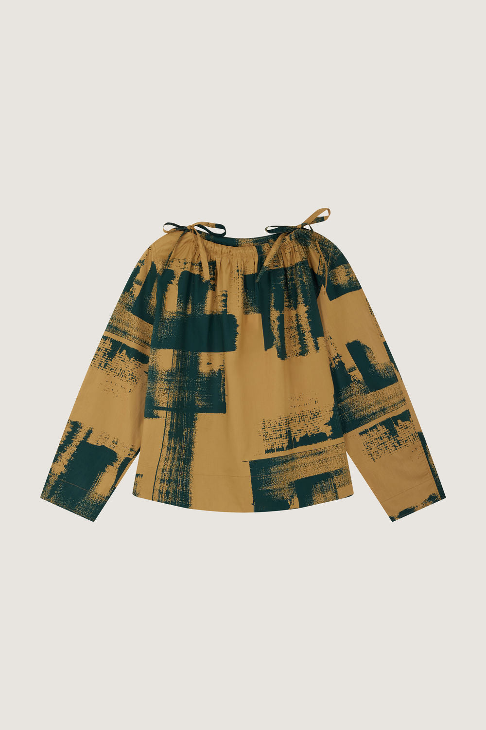 Blue and beige printed cotton poplin blouse beige print