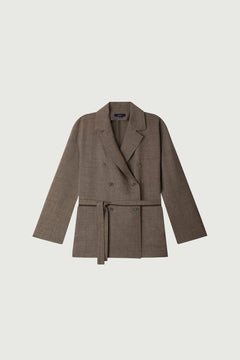 Wide trousers in mottled wool cloth brown/ecru