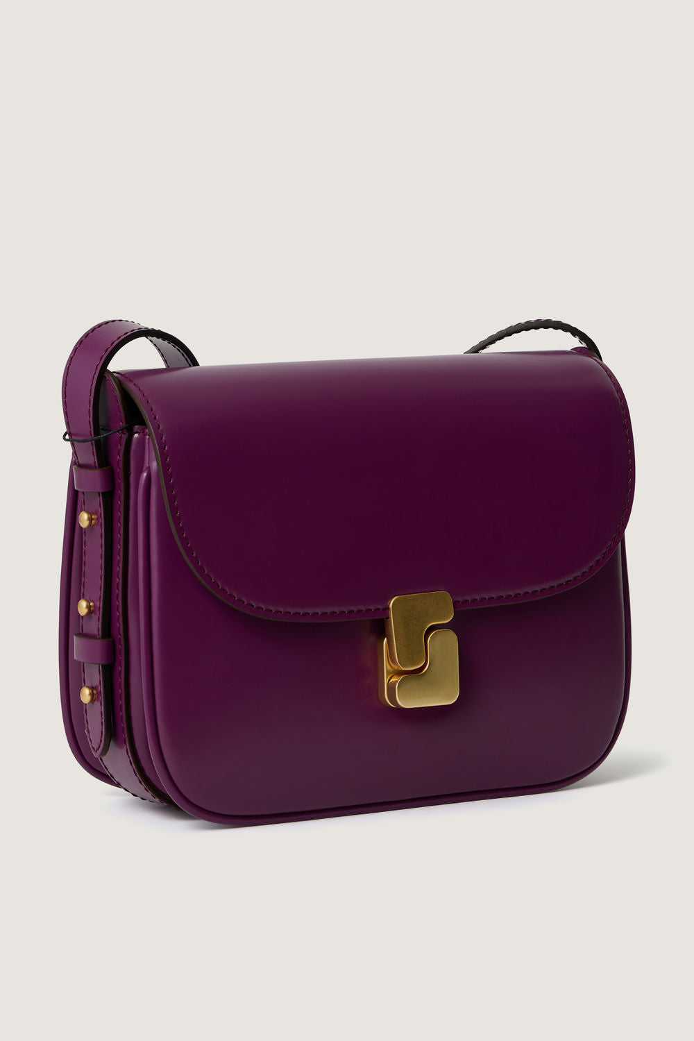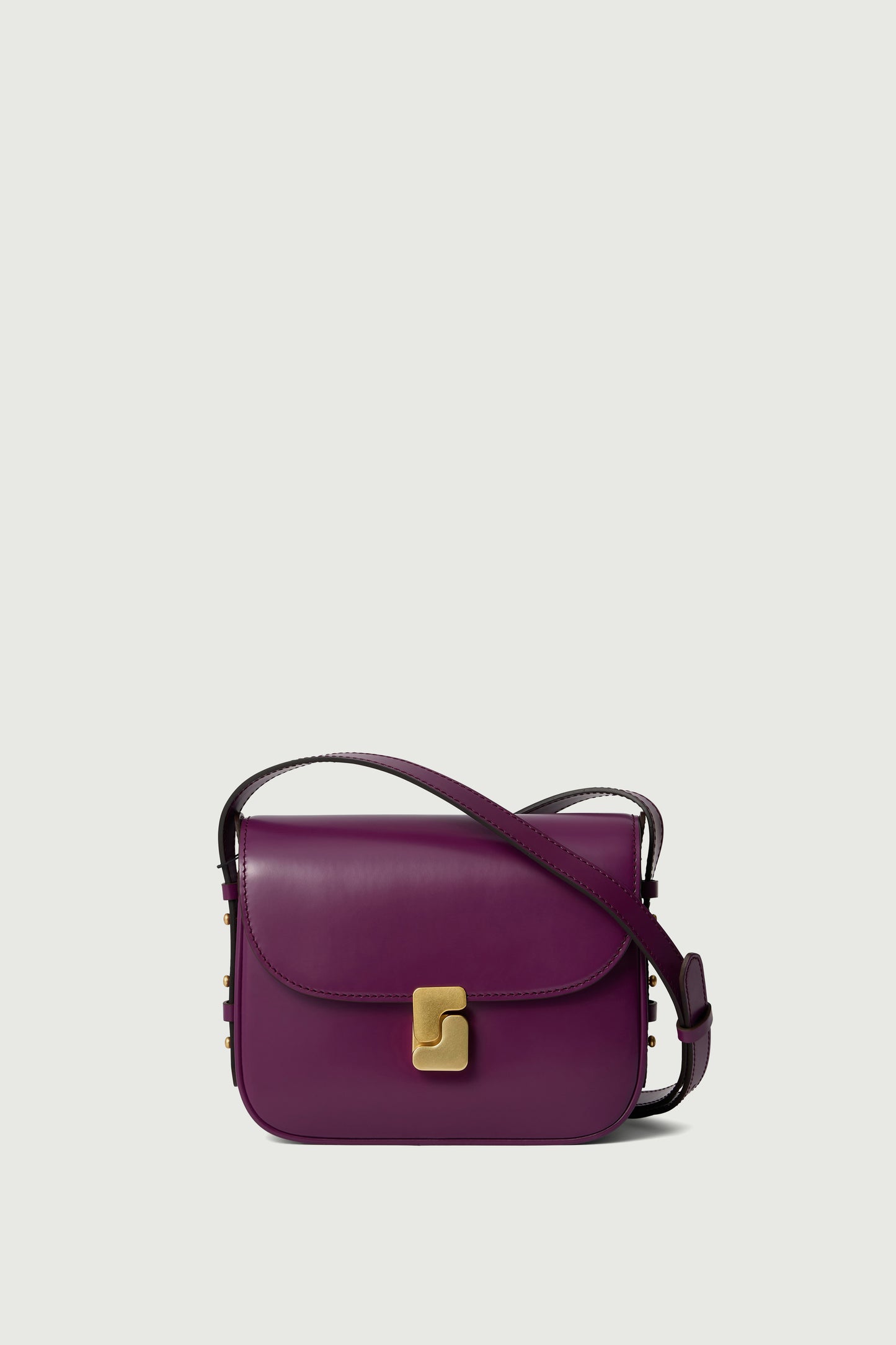 bellissima mini bag Purple glazed leather bag with "S" monogram
