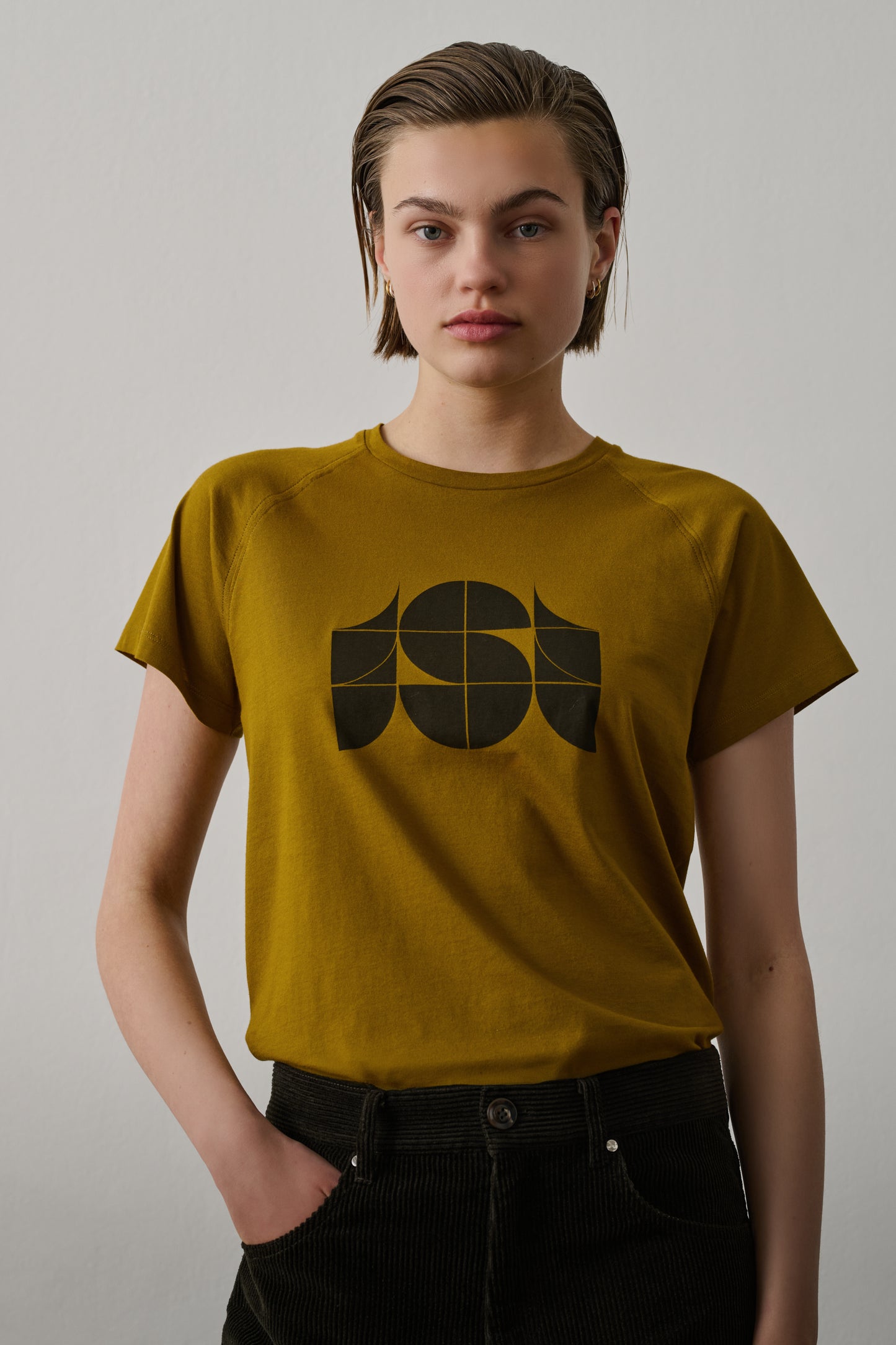 Screen-printed T-shirt in cotton jersey bronze