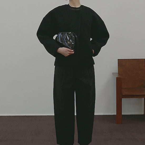 Short jacket in black boiled wool black